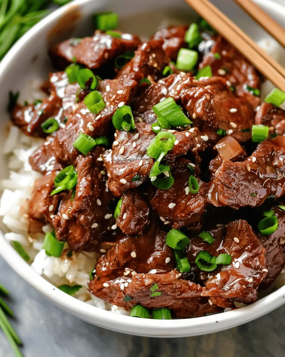 Finish with a sprinkle of sliced green onions, and there you have it—your delicious slow cooker Korean beef is ready to serve over rice or noodles.
