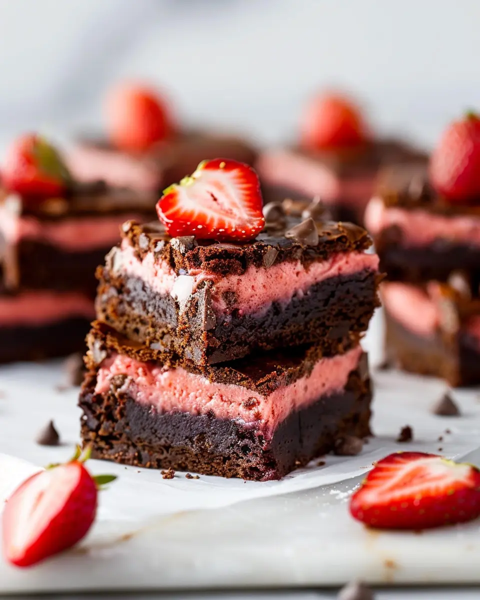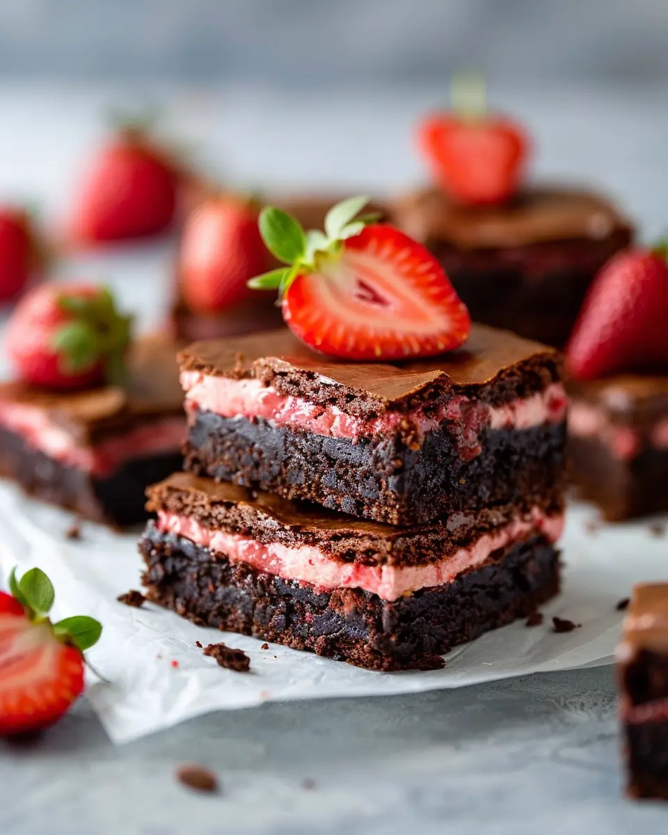 Whether you’re treating yourself or impressing guests, these brownies are sure to be a hit. So grab your ingredients, embrace your inner baker, and create this stunning dessert that brings joy with every bite! Don’t forget to check out Nutritional Insights for the benefits of strawberries, and consider pairing your brownies with fresh whipped cream or a scoop of vanilla ice cream for that perfect finish.
