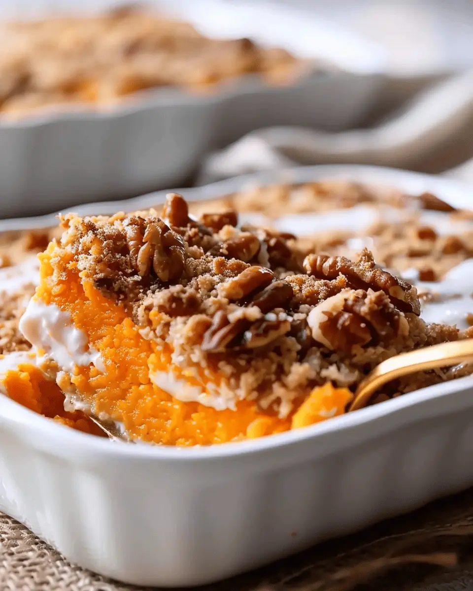 Taste and Texture: The contrast between the creamy sweet potato base and the crunchy topping—often made with ingredients like nuts or crumbled turkey bacon—offers an irresistible blend that keeps everyone coming back for more.