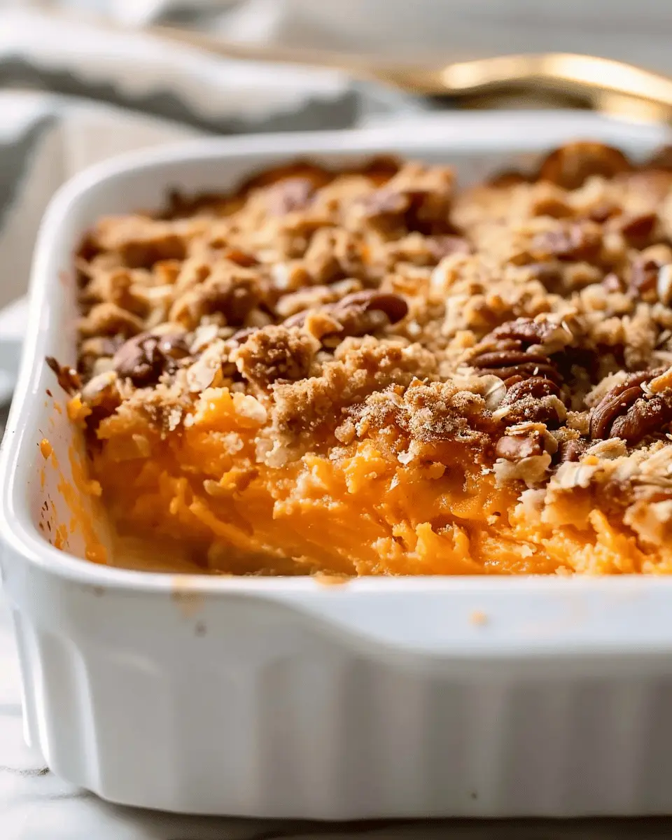 Flexible Serving Ideas: Whether you’re hosting a potluck, celebrating Thanksgiving, or enjoying a quiet dinner with friends, sweet potato casserole fits right in. It pairs wonderfully with various main courses, from roasted chicken ham to savory beef dishes.