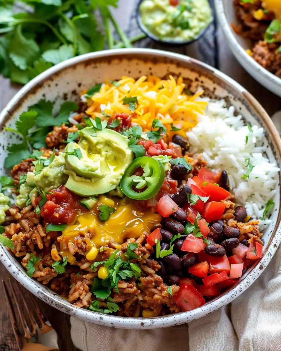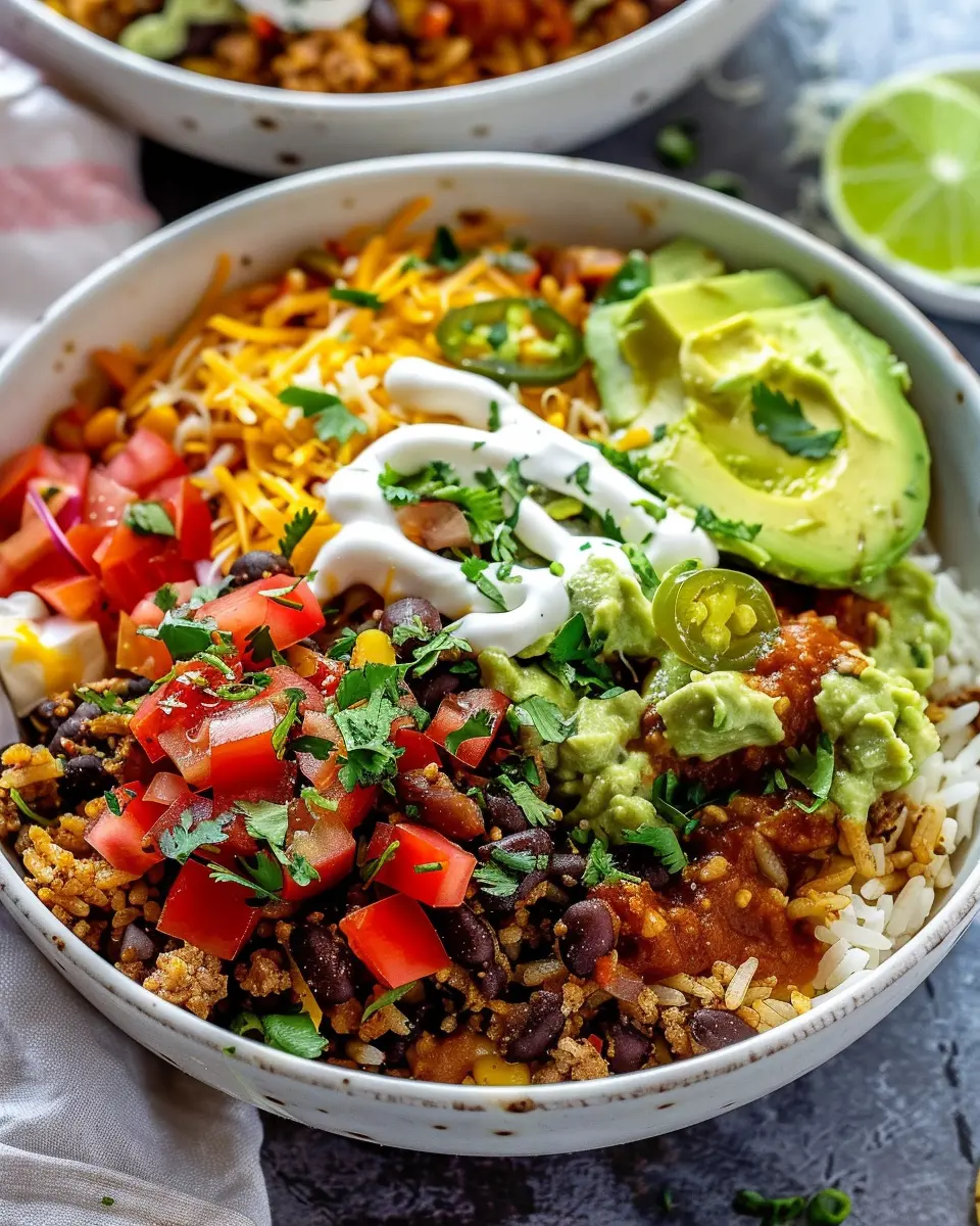 • Spices: Taco seasoning is a must! A blend of cumin, chili powder, garlic powder, and paprika can elevate your bowl’s flavor profile.