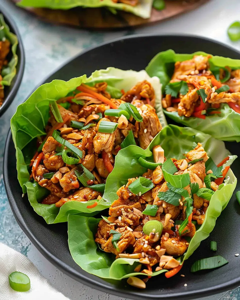 Now comes the fun part—assembling your Thai Chicken Lettuce Wraps!