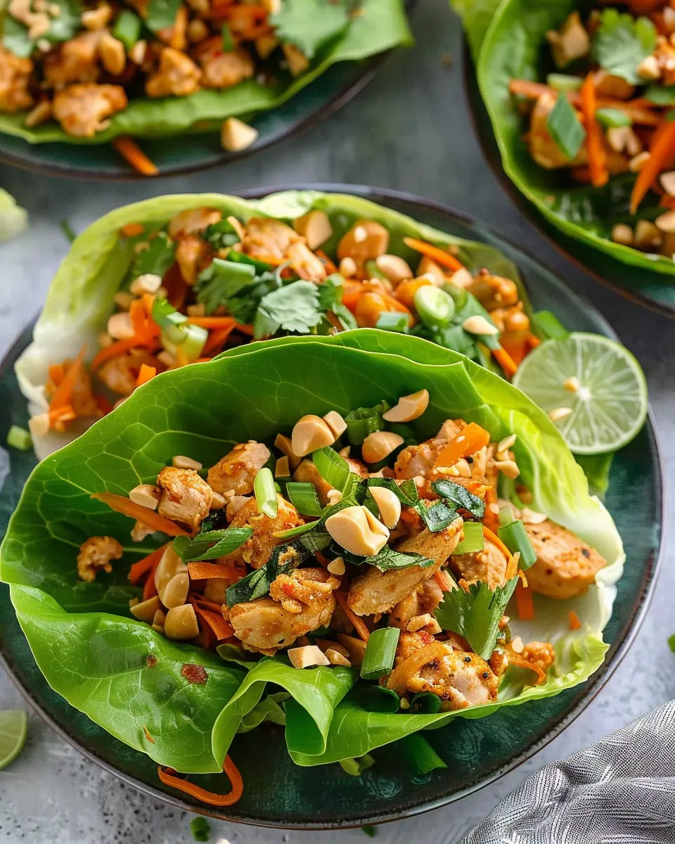 In closing, Thai Chicken Lettuce Wraps are not just a meal; they’re an experience. This dish combines fresh flavors with a satisfying crunch, making it an excellent choice for a quick weeknight dinner or a fun appetizer for gatherings. The versatility of these wraps means you can customize ingredients—think swapping in fresh vegetables or your favorite sauces for a personal touch.