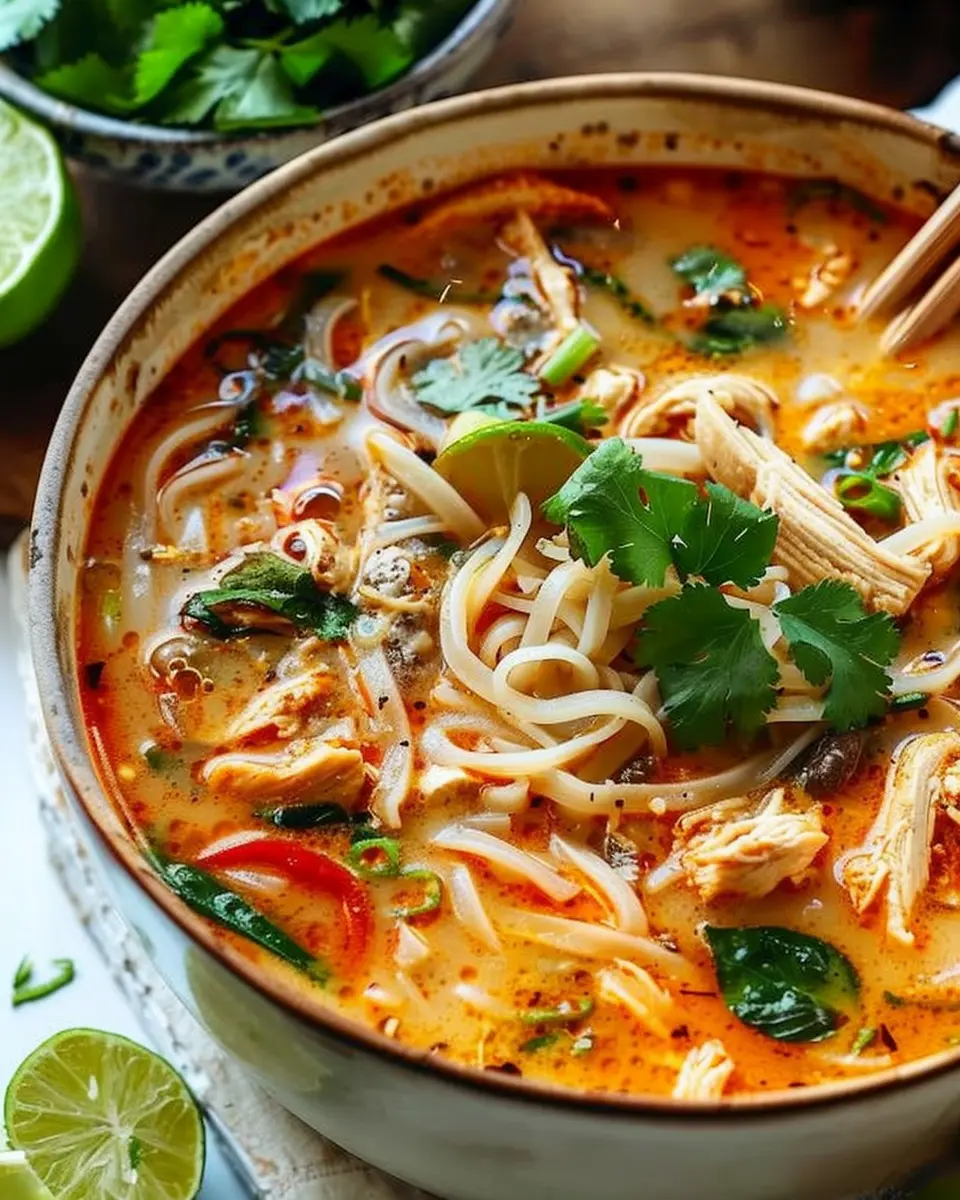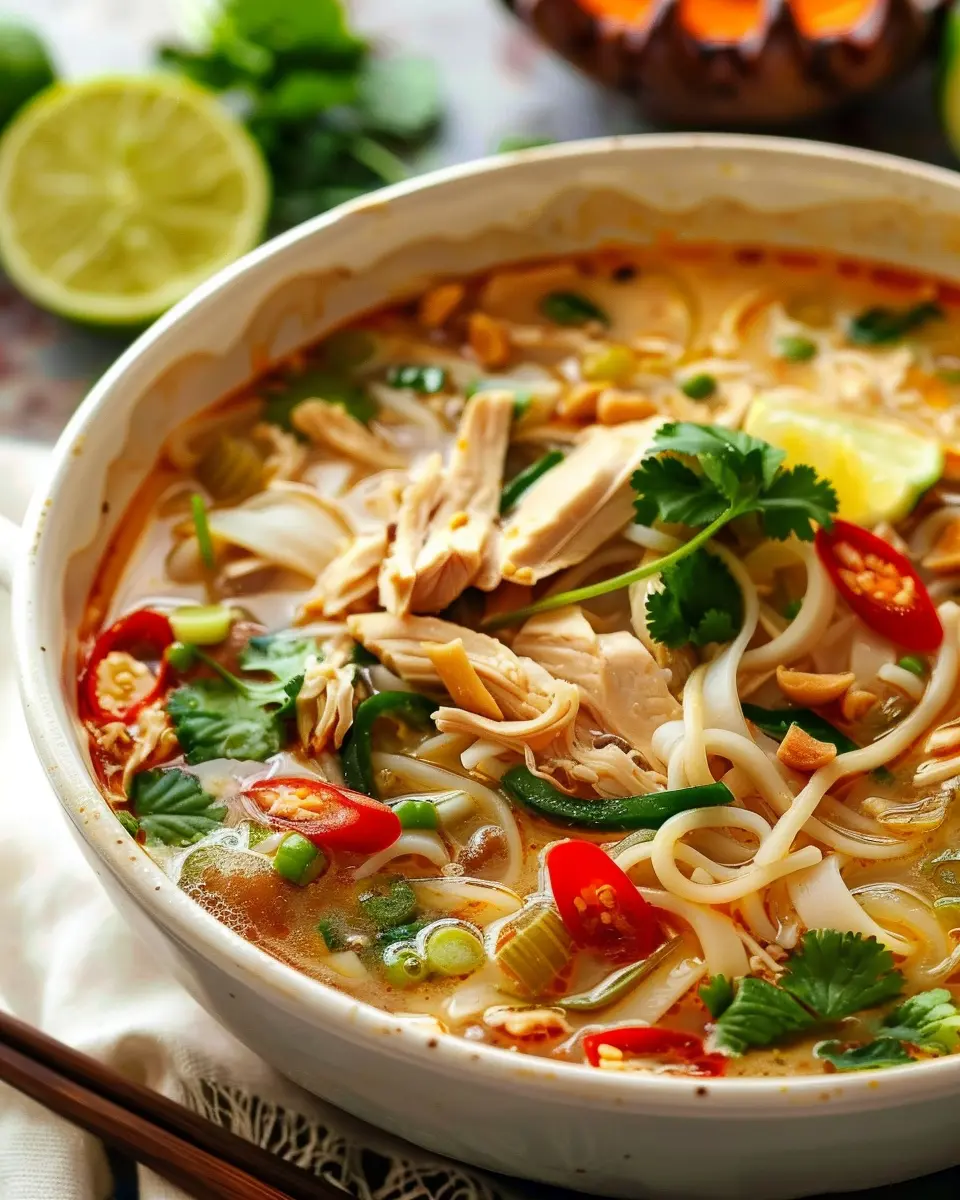 A warm and hearty Thai Chicken Noodle Soup that brings comfort to every bowl.