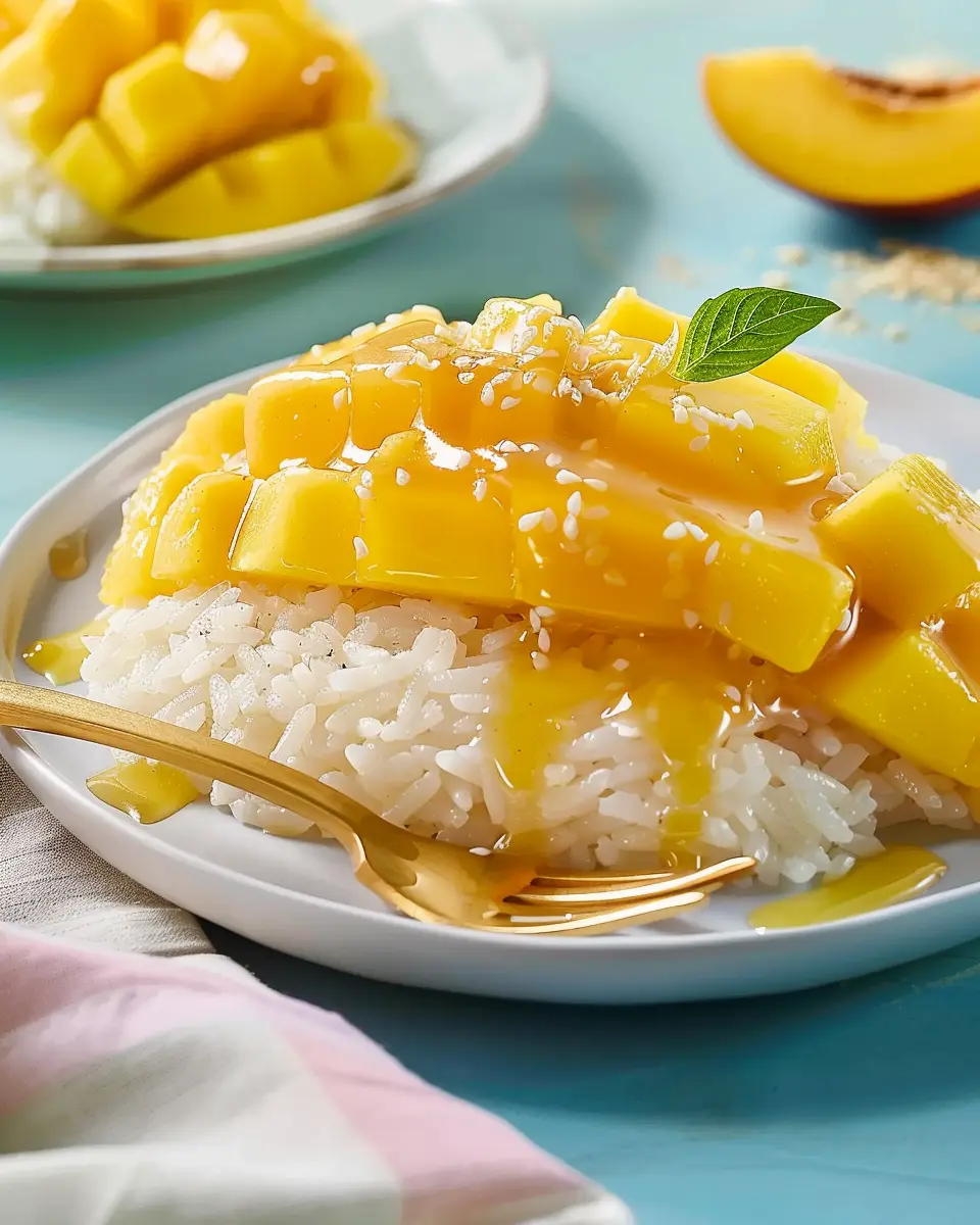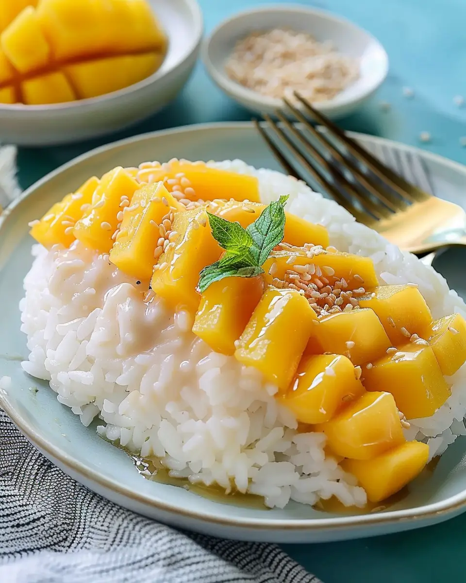 For an added texture twist, sprinkle some toasted sesame seeds or roasted peanuts over your sticky rice. Not only do they contribute delightful crunch, but they also introduce unique, nutty flavors that wonderfully complement the sweetness of the mango.