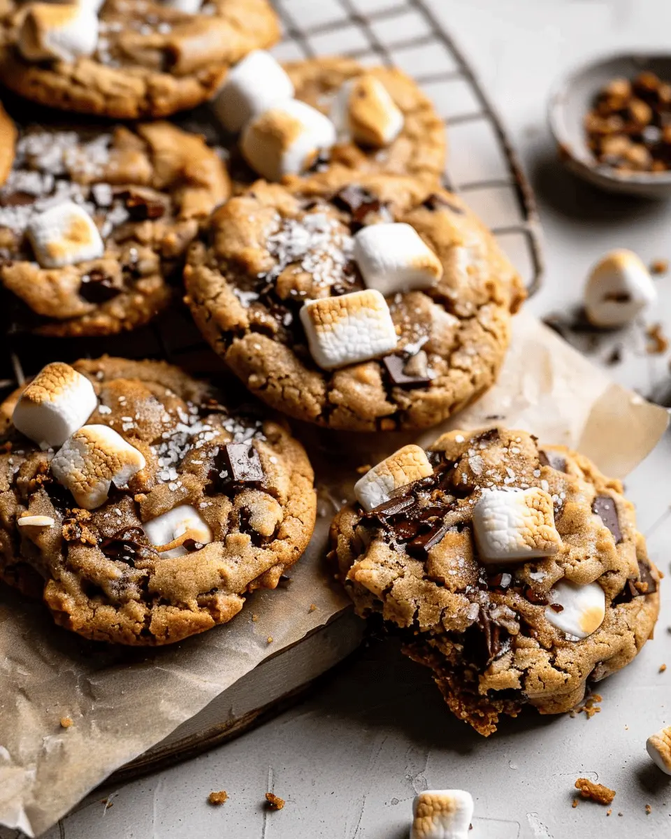 Toasted marshmallow mashup cookies are a feast for the eyes and taste buds! For a fun presentation, consider stacking two cookies with a scoop of vanilla ice cream in between, creating an epic ice cream sandwich. You can also serve them warm, drizzled with melted chocolate or caramel sauce for that extra indulgent touch. Why not arrange them on a rustic wooden plate sprinkled with crushed nuts or colorful sprinkles to elevate a gathering or casual dinner?