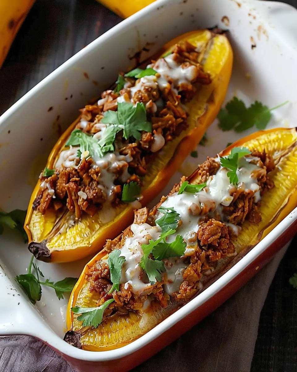 Presentation can elevate your dish from simple to stunning! For your Turkey Picadillo Stuffed Sweet Plantains, try using large, elegant plates. Position the plantains diagonally and sprinkle a little chopped cilantro on top for color. Consider adding slices of avocado on the side for creaminess. A dollop of crema or a sprinkle of crumbled feta cheese can add a delightful contrast, making it visually appealing. Remember, we eat with our eyes first, so let your creativity shine!