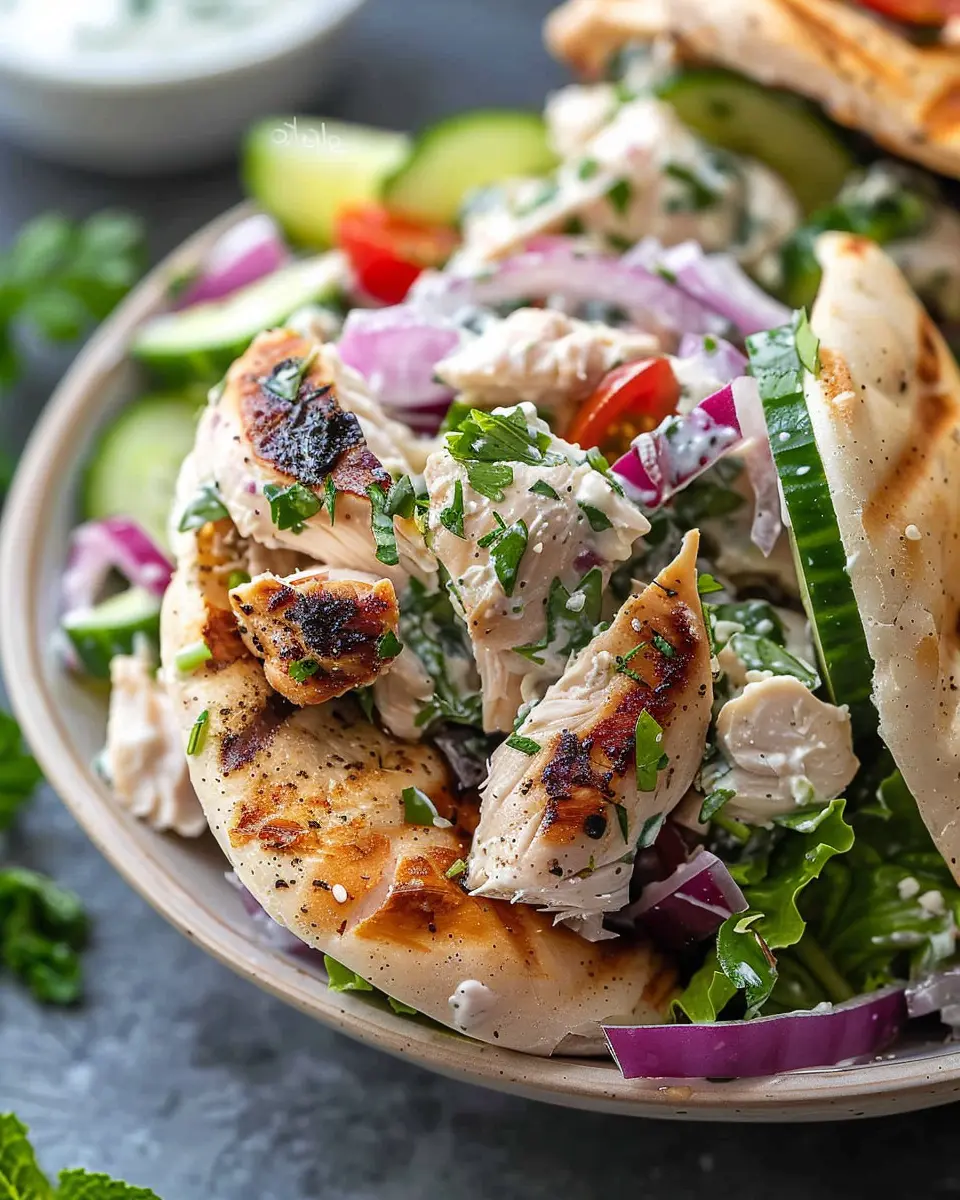 One of the most fun and versatile ways to enjoy tzatziki chicken salad is by serving it in pitas or wraps. The combination of flavors and textures creates a satisfying meal on-the-go! Simply take a warm pita, fill it generously with the chicken salad, and add some fresh veggies like cucumber or tomato for an extra crunch. If you’re in the mood for a little twist, try using spinach or sun-dried tomato wraps for a burst of flavor.