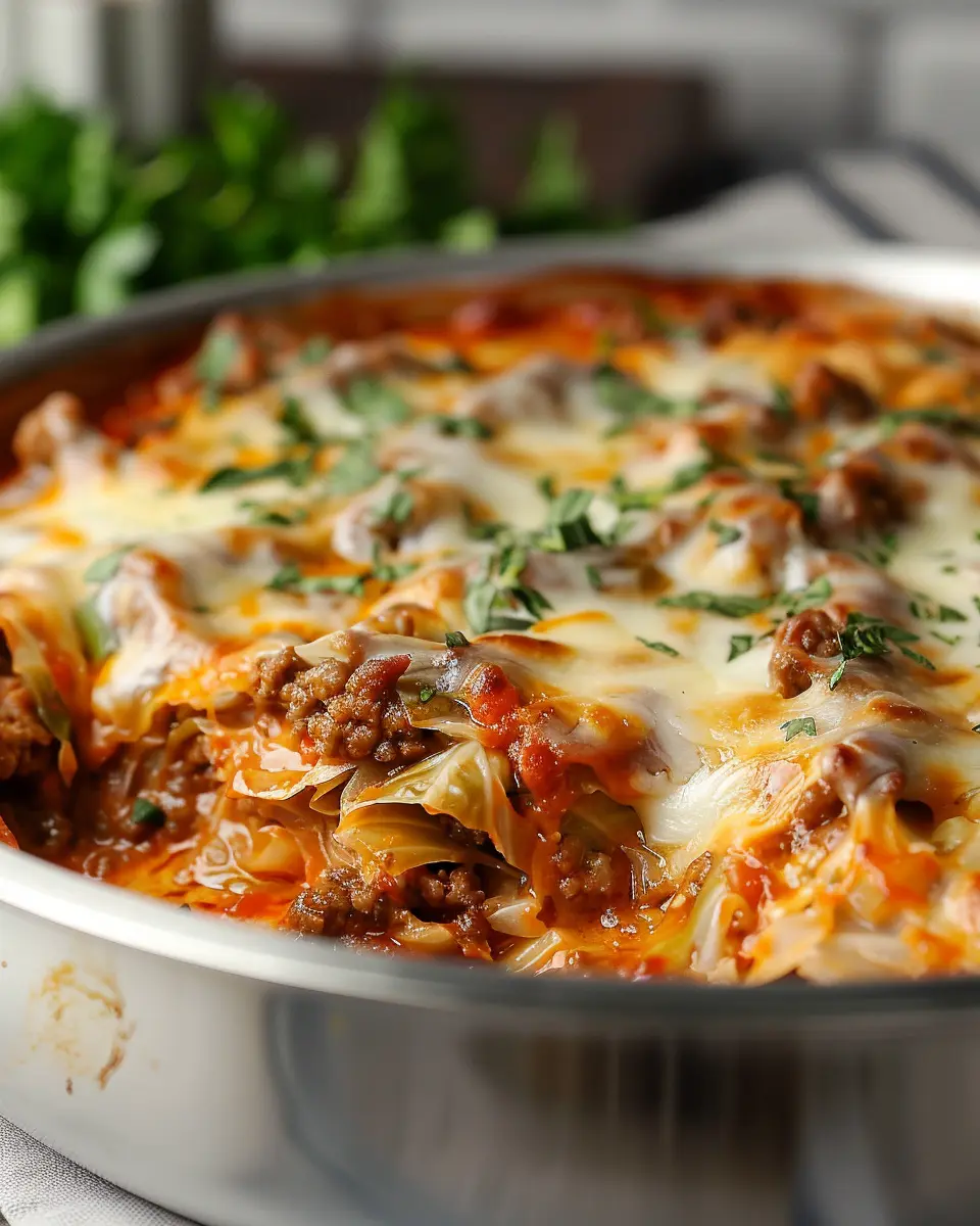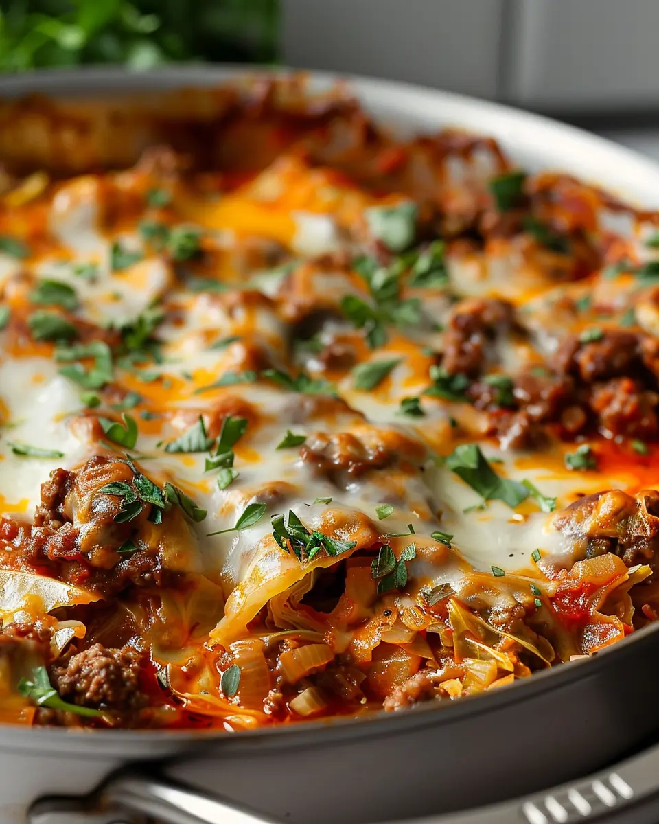 And voilà! You’ve just prepared an unstuffed ground beef cabbage roll that is sure to impress without demanding too much of your time. Serve it hot, and enjoy the warmth and simplicity of this delightful one-pan meal. If you loved this, check out more casserole recipes for your next dinner inspiration!