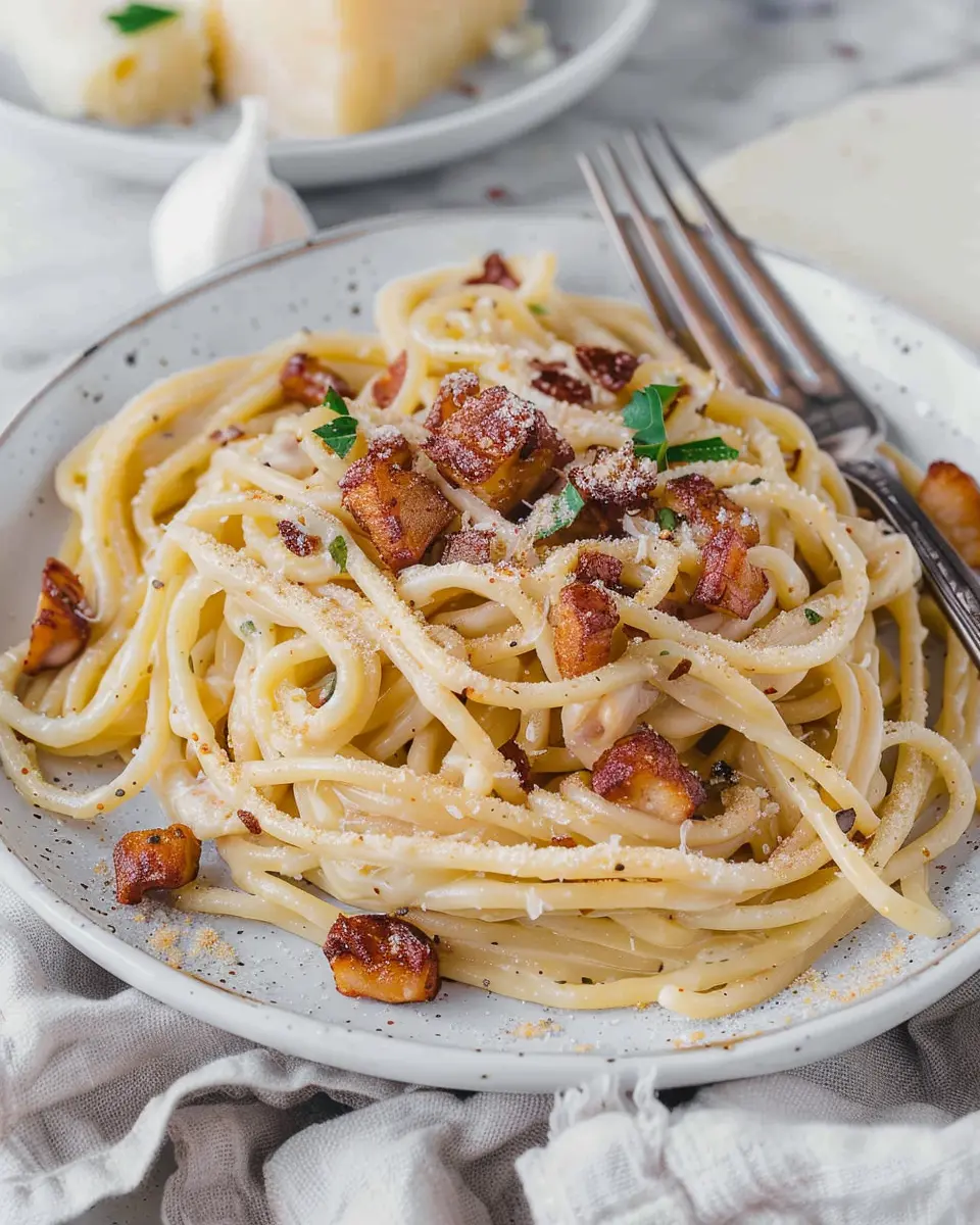 Absolutely! One of the best things about vegan carbonara is its comforting and creamy texture, which many kids love. The use of Turkey Bacon or Chicken Ham adds a savory taste that appeals to young palates. You might even sneak in some veggies like peas or spinach for added nutrition without the kids realizing. Trust me—this dish might just become a family favorite!
