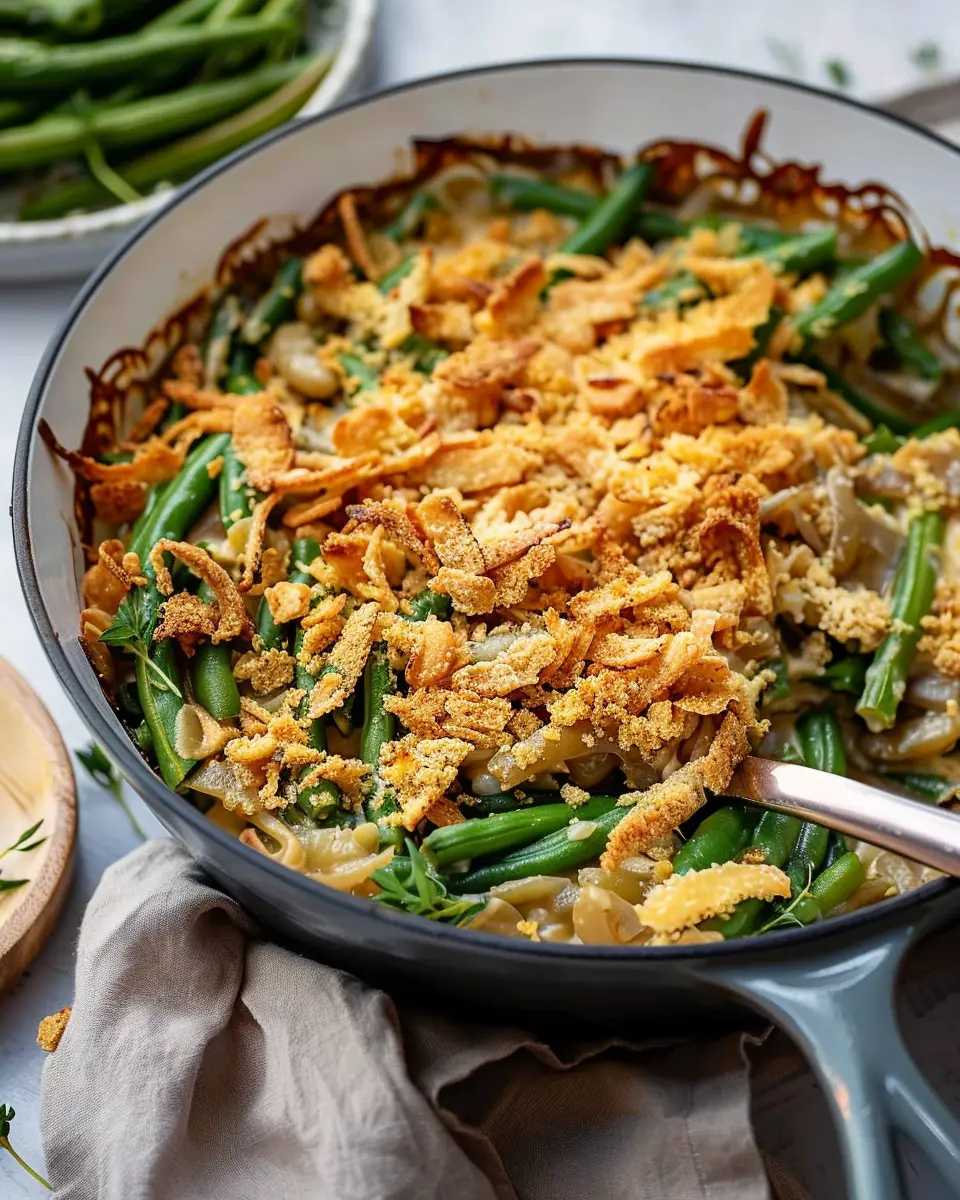 In conclusion, the vegan green bean casserole is not just a dish; it’s a celebration of flavors and textures that can elevate any meal. Whether you’re serving this at a holiday gathering or looking for a cozy weeknight dinner, this casserole easily becomes a star on your table. The combination of tender green beans, creamy sauce, and crispy toppings brings a delightful twist to a classic recipe. Plus, it’s a dish that even non-vegans will love! So why not give it a try? You might just find a new favorite dish that fits perfectly into your meal rotation. For tips on ways to personalize your casserole, check out The Spruce Eats or Minimalist Baker.